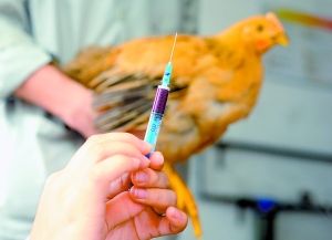 昨日,广东检疫人员对供港澳活禽养殖场的鸡进行采血采样。