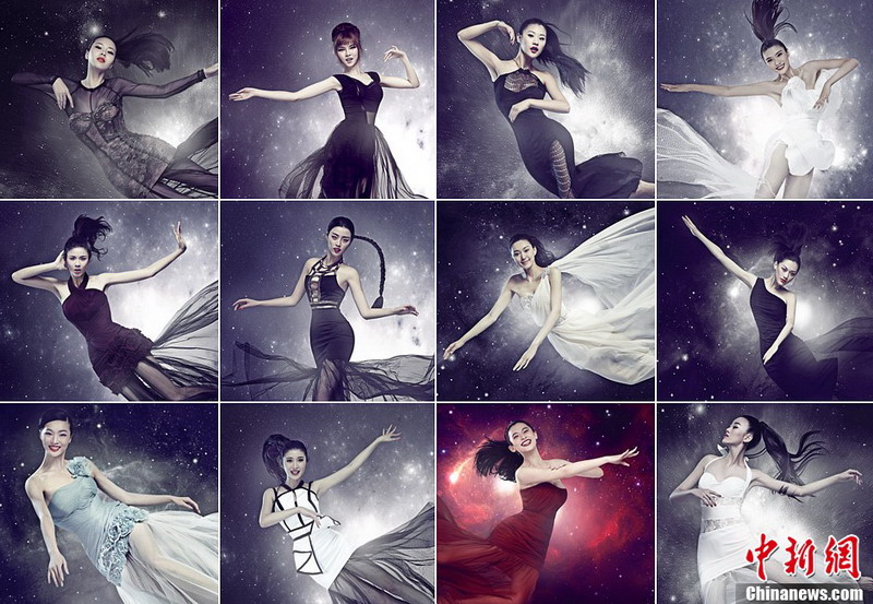 2013世界小姐中国区总决赛冠军直通赛佳丽“星空”主题大片出炉,14位入围佳丽以“飞天”造型别致亮相,让人不由惊呼图片是如何拍摄的?