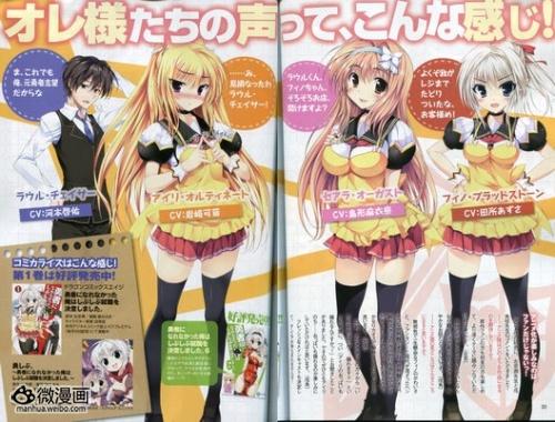 其中女主角菲诺的声优是1993年出生的田所梓,曾为《偶像活动》雾矢葵、《美少女死神还我H之魂》饭赖宗绪配音。塞阿拉的声优是曾在《宫河家的空腹》献声宫河日向的岛形麻衣奈。艾丽的声优是曾在《宫河家的空腹》献声小池绘梨华的岩崎可苗。男主角劳尔的声优是1986年出生的河本啓佑,配音角色包括《RDG濒危物种少女》的三崎洋平、《Another》的前岛学等配角。
