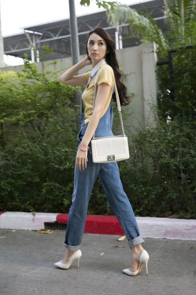 时尚达人吴佩慈出席各种品牌活动已经见怪不怪了,连街拍都依然有范儿!牛仔背带长裤内搭黄色衬衫知性优雅,再加上白色尖头高跟鞋和小香包简直是画龙点睛恰到好处。