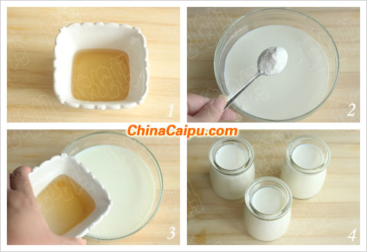 原料:纯牛奶100克、酸奶150克、糖粉20克、吉利丁粉5克、清水50克