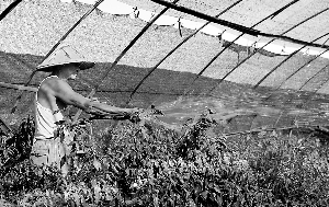 8月8日下午,柯城区信安街道北门村菜农冒着酷暑给近百亩菜地浇水抗旱。持续高温天气给柯城区3万多亩菜地造成严重旱情,该区紧急启动抗旱措施,确保市民菜篮子不因旱灾而受损。吴铁鸣何润云摄