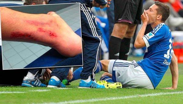 北京时间8月11日结束的德甲首轮沙尔克3-3汉堡一役,沙尔克10号德拉克斯勒首发登场仅23分钟就受伤离场,他可能缺席周中德国VS巴拉圭的国家队比赛。赛后德拉克斯勒在脸书晒出自己的伤退,伤势之惨烈令人触目惊心。