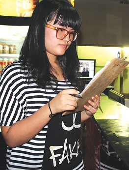 汤婷在网吧当收银员,很认真地做好每一件事情。