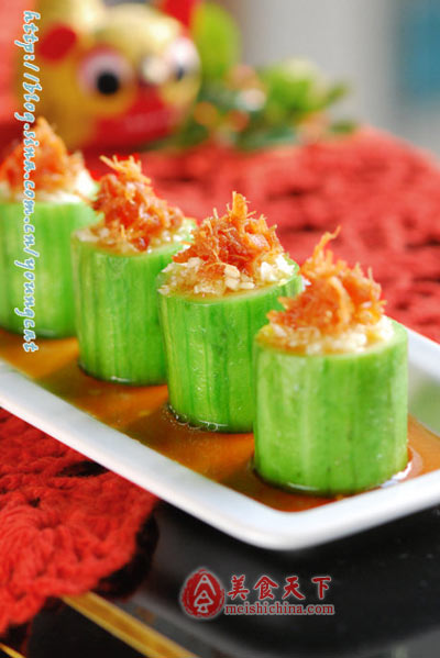 材料:丝瓜80克,干贝1个,枸杞10克,盐适量。