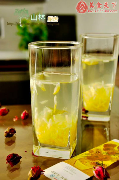 2、将柠檬片放在凉开水中,再放入蜂蜜冲调即可。