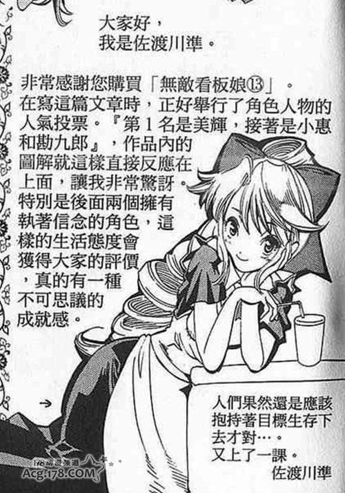 漫画家佐渡川準是茨城县利根町出身,在2000年获得秋田书店“周刊少年冠军”第55届新人漫画赏之后,以漫画“无敌看板娘”出道,代表作除了“无敌看板娘”之外,还有“半座的一片天”、“温周的日常物语”、“PUNISHER”等。其中,“无敌看板娘”曾在2006年改编成TV动画。