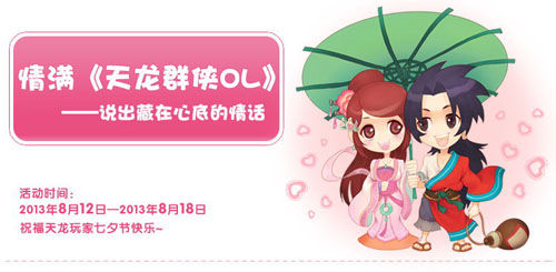 “两情若是久长时,又岂在朝朝暮暮”,一年一度的七夕,牛郎织女又要踏鹊桥相会了。《天龙群侠OL》为迎接这个爱情的节日,特别为广大的玩家准备了两个七夕活动:携手放天灯,让爱照鹊桥。