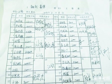 网友“我不是虚构的”表示,公司派自己去一个项目做实地踩盘收集资料,无意间捡到了这张工资单。“貌似是民工兄弟的月工资单,最少的5000元,最高的14000元,确定这是民工兄弟的工资单么?逆天了!”网友“我不是虚构的”表示,看到这个,坐在办公室里面的优越感瞬间没有了,“平时泡贴吧,老是自嘲自个儿是搬砖的,看到这个,你还敢自嘲自己是搬砖的?被秒杀的小白领,来嘛!尽情来吐槽,看你‘搬砖’够不够格。”