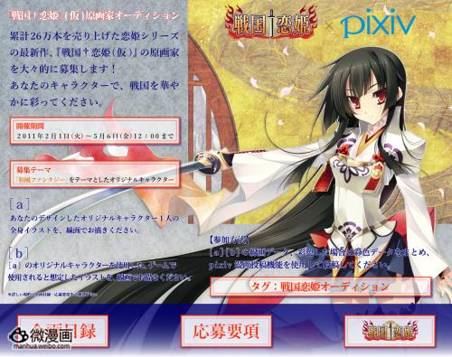 《战国恋姬》游戏早在2011年就已经发表,并在插画投稿网站Pixiv募集了画师,之后一直没有后续情报,这次终于公开正式标题《战国恋姬~乙女绚烂☆战国绘卷~》。目前官网只可以看到一个角色背影,看起来像是此前公开的女性角色“织田三郎(久远)信长”。游戏更多情报预定8月下旬公开。