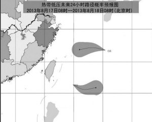 位于台湾东南洋面,预计在今天之内会加强成为热带风暴。目前向东发展移动,预测接下来转回向西,在浙江南面省份登陆,继而北上影响杭州。