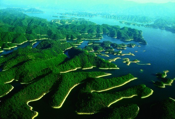 千岛湖,位于浙江省淳安县境内,是1959年我国建造的第一座自行设计、自制设备的大型水力发电站——新安江水力发电站而拦坝蓄水形成的人工湖,是国家一级水体。千岛湖景区总面积982平方公里,其中湖区面积573平方公里,因湖内拥有星罗棋布的1078个岛屿而得名。杭州千岛湖与加拿大渥太华西南200多公里的金斯顿千岛湖、湖北黄石阳新仙岛湖并称为"世界三大千岛湖"。