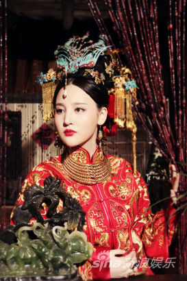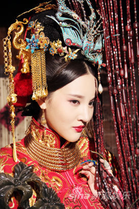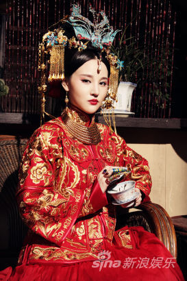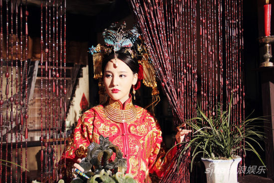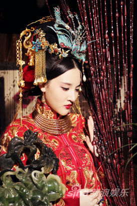 电视剧《十月围城》女一号区舒云由90后影视新星刘筱筱饰演。人物背景是生在巡抚之家,继而嫁入广东第一首富之家,而后成为一个先进的革命者,区舒云这个角色可谓整个故事的核心人物。她在剧中分别有着“千金小姐”、“富家儿媳”、“革命青年”等多重身份,这也造成了区舒云在各个阶段都有着不同的服装。在已曝光的造型中,除了民国洋装、清装旗头以及女扮男装外,最为奢华的是一套完全按照民国时期的广东特色新娘打造的婚服,双面金丝手绣配点翠凤冠,装扮上的刘筱筱颇有几分贵妃的派头。