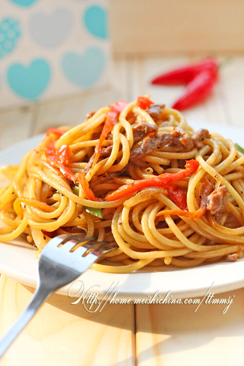 黑椒牛柳炒意面(两人份)