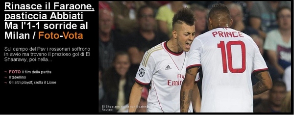 在荷兰,AC米兰承受了埃因霍温队施加的强大压力,但是沙拉维打入的价值连城的客场进球,让AC米兰带走了1-1平的结果,非常靠近于晋级欧冠正赛。这是一个能够让AC米兰微笑的比赛结果,或许美中不足的是,阿比亚蒂的一次低级失误让AC米兰并未守住领先的优势。
