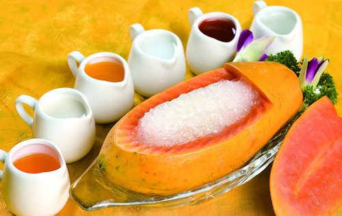 木瓜它有独特的蛋白分解酵素,可以清除因吃肉类而积聚在下身的脂肪,而且木瓜肉所含的果胶更是优良的洗肠剂,可减少废物在下身积聚。