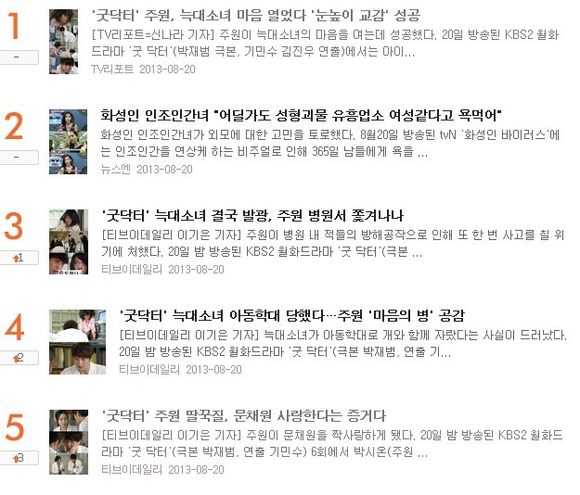韩国热搜新闻前十 《Good Doctor》依然占了七篇