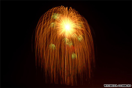 日本是世界上最大的烟花Yonshakudama的故乡。这个450千克(992磅)重的烟花发射后能上升1千米,爆炸后会形成一个800米宽的花的形状。