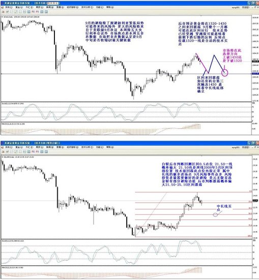 本周关注焦点是周五非农数据,下周美国国会将对是否军事打击叙利亚进行投票;本月风险事件众多,市场避险情绪将高涨,美元看涨,金银后市偏于震荡;白银将在21.50-25.10之间震荡,21.50一线可进场做多。