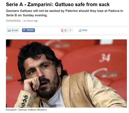 前米兰球星加图索在这个夏天,刚刚被任命为意外降级的意乙球队巴勒莫新任主教练。然而球队在前两轮联赛中仅仅取得了一平一负仅积一分的成绩,赛后也传出巴勒莫主席赞帕里尼告知加图索一旦第三轮不能取胜就要下课的消息。