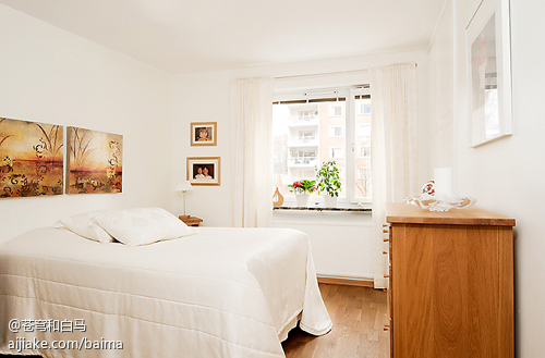 卧室,简单干净,没有多余的装饰,以白色为主。