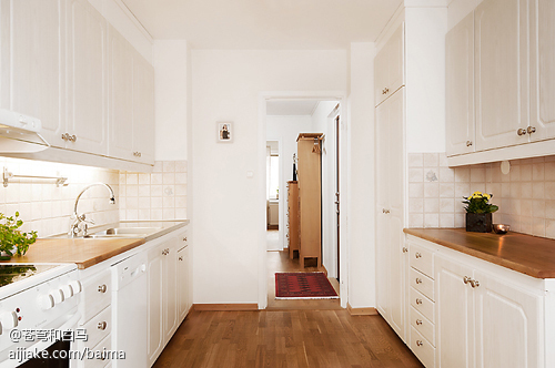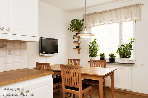 厨房里面放置着餐桌,大概可以容纳8人的实木桌子,里面都有非常现代化的工具,和存储空间,美丽的橡木白色的瓷砖,都具备冰箱之类的设置。