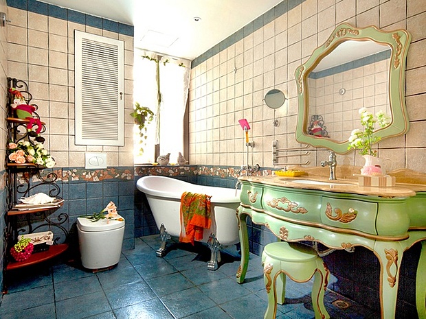 浓浓的地中海风情扑面而来,却又毫不单调。色彩搭配得恰到好处,精美而又别具风情的家具和饰品,让人仿佛身处童话中一般。【注】卫生间和厨房的图片设计师苏颖制作。