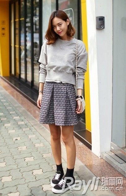 卫衣短裙巧遮水桶腰 秋日扮靓不打折