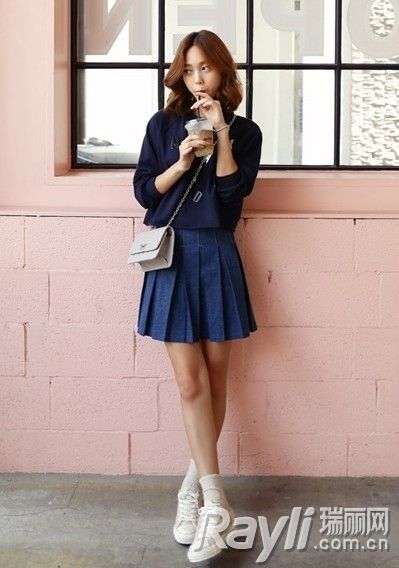 卫衣短裙巧遮水桶腰 秋日扮靓不打折