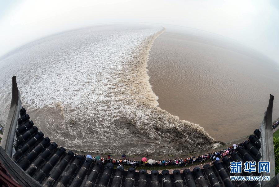 9月7日,游客在浙江海宁盐官景区观看钱塘江一线潮。当日是农历八月初三,众多游客来到观潮胜地浙江海宁观看钱塘江大潮。钱塘江潮涌以其磅礴气势和壮观景象闻名于世,潮头最高时达3.7米,潮差可达8至9米,尤以农历初一至初六、十五至二十为大。第20届中国国际钱江(海宁)观潮节将于9月17日至9月26日举行。