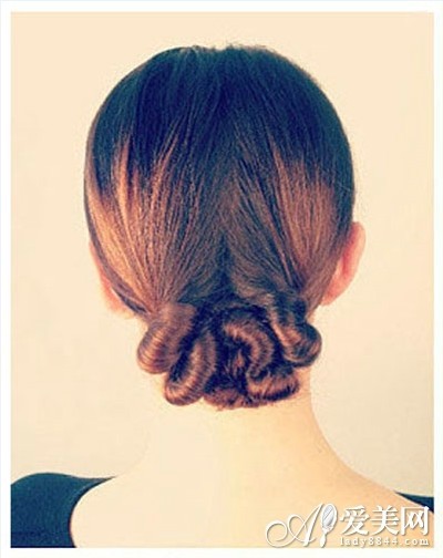 用手将头发拉为左右两侧,然后将发尾从外向内拉起。