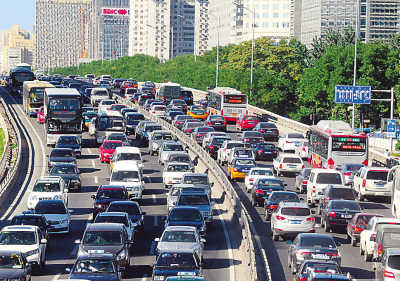 图为九月十日拥堵的北京西二环。