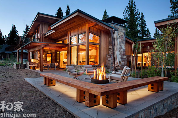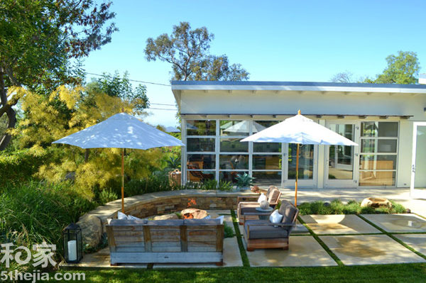 小编的话:别墅空间有着很大的花园区域,在大片的泥地上圈出了一块休息区,其上放上单人椅,外围靠边的地方放上了L型的木制长凳,和整个房子的材质、风格相一致。