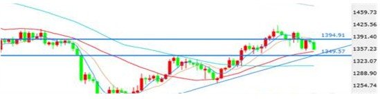 黄金中1365.54幅2.33(0.17%)、买1365.54卖1365.54、高1365.64低1363.03、开1363.48 ;金走势偏弱关注前期低点1359的支撑,跌破要去1350.日线图上,黄金仍承压于1380.00整数关口,5日与10日均线形成死叉且继续向下延伸,目前金价下探1362.79区域,区域是日图上升趋势线附近、30日均线1359.84附近。MACD绿色动能柱扩大,双线向下延伸,随机指标回调后继续向下延伸。短期存在下行风险,若有效下破30日均线1359.84一线,则初步下看7月24日高点1347.69,后市有望下探60日均线1320.15区域。黄金10日白天行情更是跌破了盘中5日均线及月线支撑,逼近半年线支撑位。短线行情利空局面,美元这两天也急剧回落阻挡金价下跌趋势。上行金价有效上破1380.00关口,则有望上探1390--1400或者8月28日高点1433.40,若能持续上破1433.40,将打开新的上行空间。金价难上1400美元;金日图短期受10日均线压制,下方受30日均线支撑,布林开始缩口,短期内震荡依旧,同时STO指标低位金叉上行,低多为主,4小时布林走平迹象,短期K线运行于下跌通道之中,K线被均线所压制,STO指标快速运行至超卖区。1358-1393回踩0.618支撑在1372附近,利用B-b回踩位置大概就是1366附近,而做涨B-c则可看到1400美元上方,因此在低位波段做多,即可选择在1350--1360逢低买入,趋势支撑上移1350,跌破支撑重回入空头,关注1392、1398压力,下方11360、1350支撑。长期趋势看涨,短期趋势空;阻力1400.00,1450.00;支撑:1320.00,1300.00。