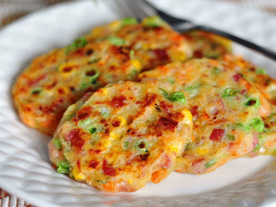 这款“三宝玉米饼”就是一款营养美味兼顾的早餐饼——玉米面中加入玉米粒、青豆、胡萝卜,是谓“三宝”,搭配培根和香葱,入锅煎至外酥里嫩,很是香甜可口,而且用料健康、搭配合理、营养均衡,可谓老少咸宜。做法也非常简单快捷。