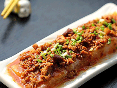 烹饪技巧:这道蒸菜很简单,将肉馅腌制入味,炒制时加入适量的牛肉酱调味后更鲜美,最后用水淀粉勾芡,浇淋在蒸好的冬瓜上。