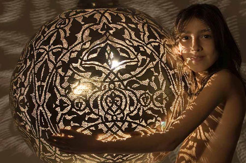这款源自埃及人灵感的灯具它的不可思议在于其超大的吊坠上面复杂的穿孔设计,在点亮时创造了一种惊人的幻想,并在周围产生特殊的阴影。据悉,每一款Zenna灯具都是依照世界各地传统工匠技术手工制成。这也使得这款灯具显得既现代又浪漫,并适应于各种氛围当中。