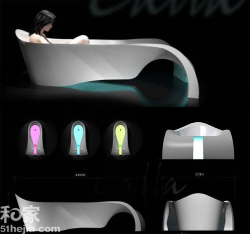 浴缸不再是传统的造型,加入仿生学与人体工程学的设计理念,让浴缸拥有更好看的外形以及更舒适的使用感受。LED的灯光效果,是浴缸变得更加的绚丽,光与影的融合加上热水蒸汽的包围,泡澡的时刻变得魔幻。