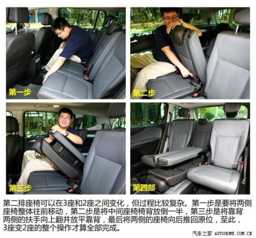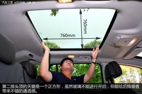 第二排座椅的多变性倒是值得一提,在一般情况下它是普通三人座的布局,而当有需要的时候,可以将中间座椅椅背放倒、折叠并形成一个硕大的中央扶手,从而形成2座布局,设计很合理,只是操作起来相对复杂一些。此外,在第二排乘客头顶上,还有一个0.58平方米的天窗,虽然整个玻璃无法开启,但能带来很好的视觉开阔感。