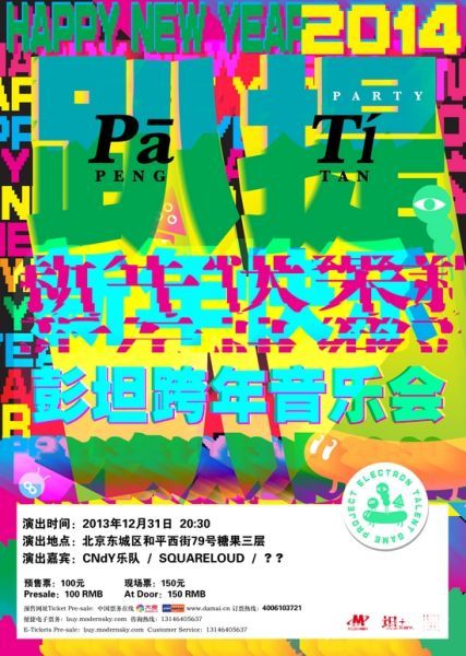 彭坦举办跨年专场此前已经延续了4年,去年因为各种原因没有举办,这次重新举办跨年专场也正好是一个彭坦用现场阐述“电子天才游戏计划Electron Talent Game Project”这一概念的重要机会。上个月彭坦已经通过摩登天空发行了该计划的第一张EP,概念诡异,但依然得到了他的新老歌迷们的力挺。12月31日的这场跨年演出,彭坦会邀请CNdY,SQUARELOUD等这样的新晋电子乐队跟自己完成一场声光电都很精彩的演出。