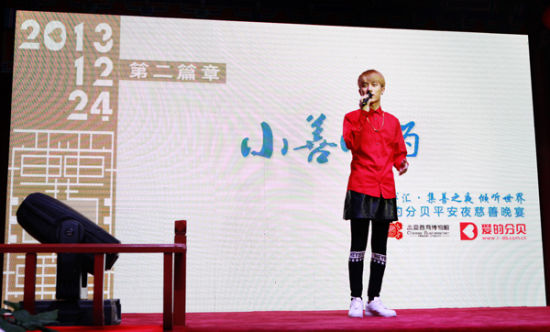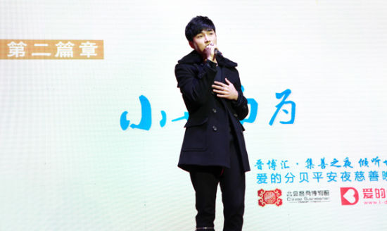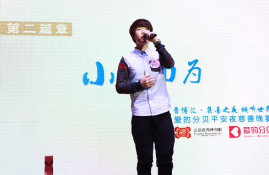 快乐男声人气选手辉灿人气之高,曾经在被淘汰之初,引起网友的强烈不满。在参与慈善晚宴之前一直担心自己作为韩国人,语言表达的问题。但是看到孩子们真挚的笑容,努力发声的状态,辉灿表示:“音乐的沟通,能让我听到他们心灵的声音。”他带来了一首韩文版《I BELIEVE》,亮相晚会的第二环节——小善而为。作为这个环节的开场歌手,他希望所有人都相信,集小善而成大爱。一身黑色衣服亮相的他,凭借干净柔和的嗓音博得了阵阵掌声。