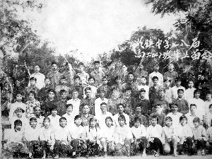 杨小牛(第三排左七)的高中毕业照。