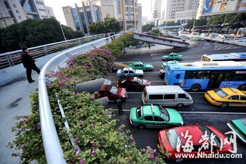 老太太就是从这座天桥坠落,砸中桥下出租车