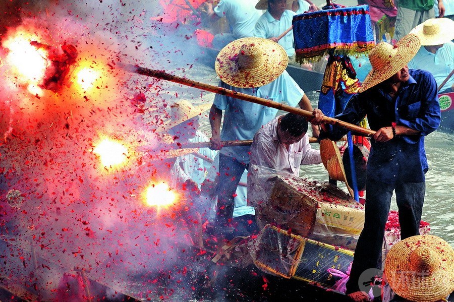 中国|安迪余(YU ANDY)|中国广州市举办的端午节活动上,这些帽子背后的狂欢者们似乎正在安全地燃放烟花爆竹。烟花爆竹从中国古代的军用炸药发明而来,是中国很多节日的一种主要庆祝方式。