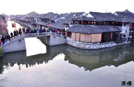 永宁桥站在永宁桥上可一览胥塘河两岸的全景,南望古朴的廊桥。胥塘河狭小成水巷,巷西是仿古一条街,巷东是古老的塘东街。