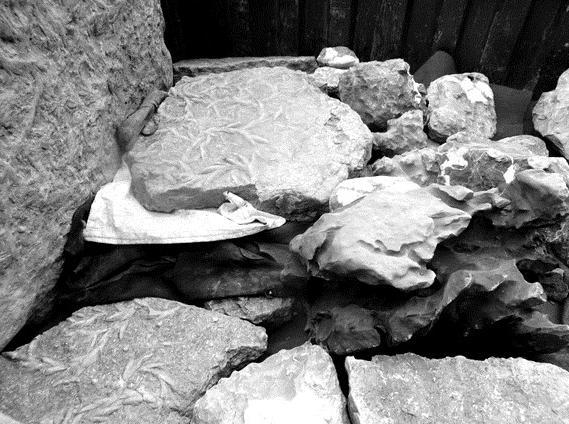 他们顺着毁损严重的公路,来到发生过泥石流的山头和溪河边查看,没过多久,他们就有了惊喜的发现。在几处山头和河谷边,他们发现不少造型奇异的石头,多块石头上有清晰可见的植物造型。覃文说,自己当时很激动,觉得遇到了“珍宝”。