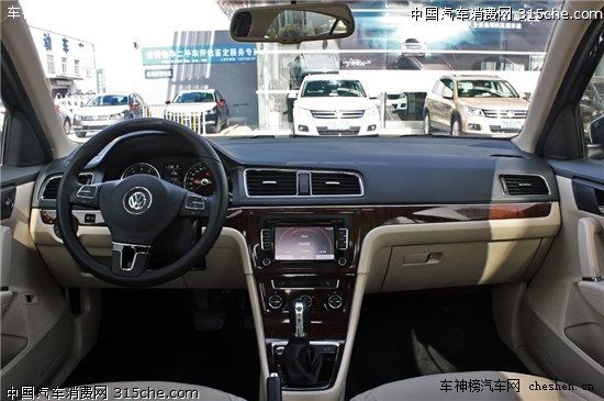 内饰大方沉稳,深浅搭配的配色简洁温馨,桃色木装饰板为车内增添更多沉稳感。中控台布局清晰整洁,层次分明,方向盘借鉴帕萨特的设计方式,并且加入了蓝牙、音量控制等功能键,手感也比较到位,音响效果比较不错。