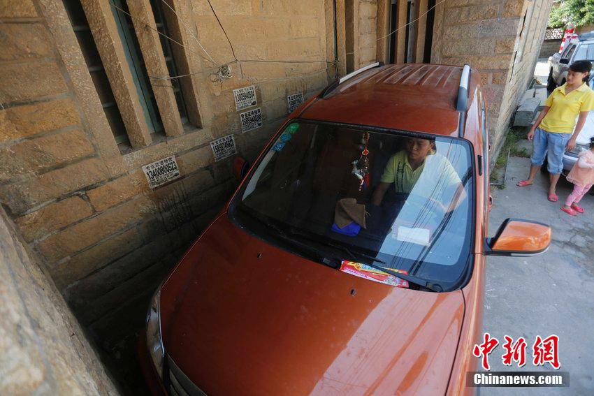 2014年10月27日消息,福建泉州。近日,晋江金井镇金井村的谢先生在朋友圈晒出一张照片,称其路过华侨新村一条巷子时,看见一辆SUV轿车“神一样”地停在一栋石头房子的凹槽里,车辆前后都贴合得很紧密,几乎是“天衣无缝”,堪称“最牛停车”。