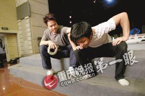 两小伙头顶头爬上26步阶梯 破吉尼斯纪录(组图)
