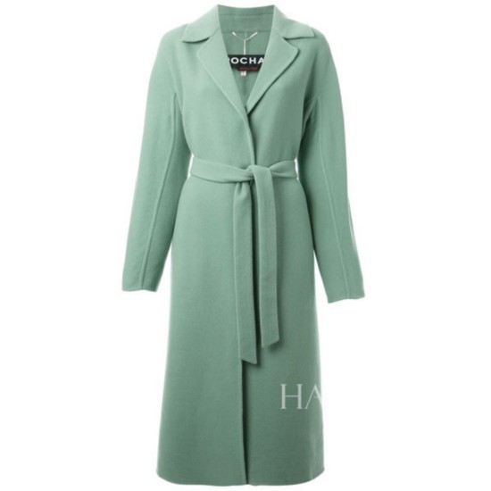 薄荷绿束腰大衣